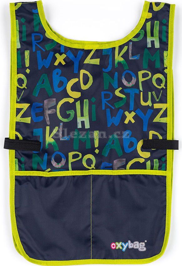Zástěra pončo do výtvarné výchovy či na jiné tvořící aktivity. Oblékání přes hlavu a po stranách zapínání na druk. Vpředu dvě prostorné kapsy. Materiál 100% polyester.