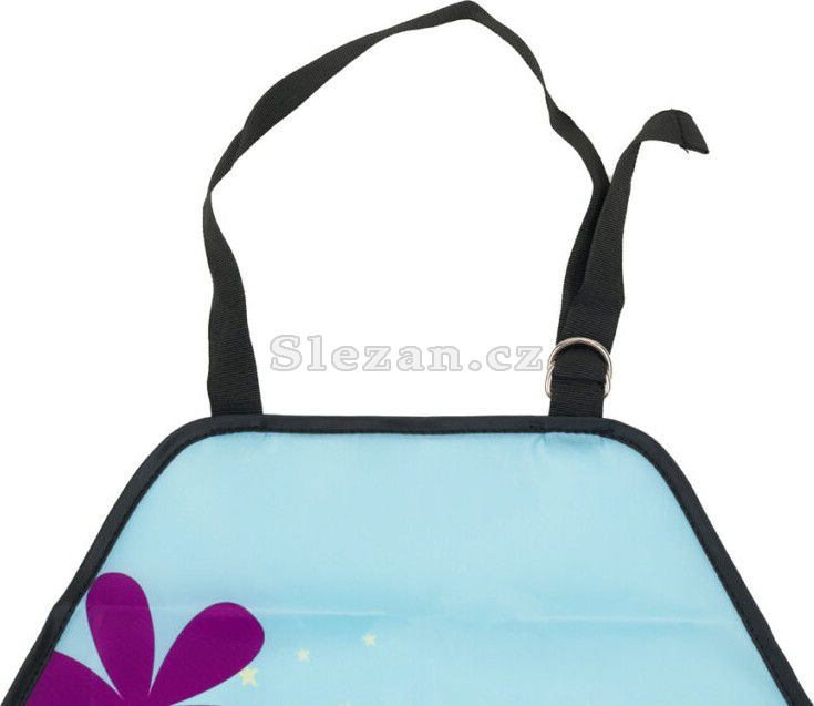 Hlavní část zástěrky je potištěna obrázky ve školních designech, ladících ke školní kolekci.