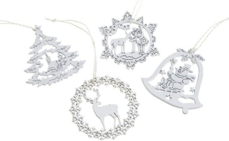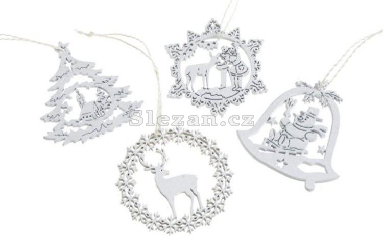 Závěs Vánoční mix 6cm, 8ks, dřevo, bílý