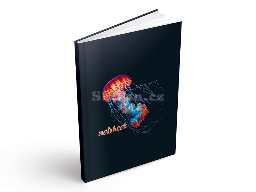 Záznamová kniha MFP ve formátu A5, bez linek, s motivem medúzy.