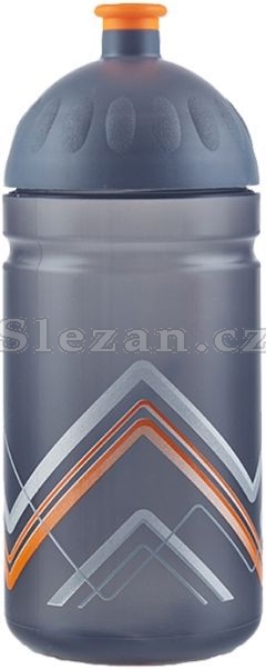 - Design lahve BIKE Hory oranžová tvoří střírbno-šedé a oranžové geometrické linky znázorňující pohoří na antracitovém transparentním (průhledném) těle lahve