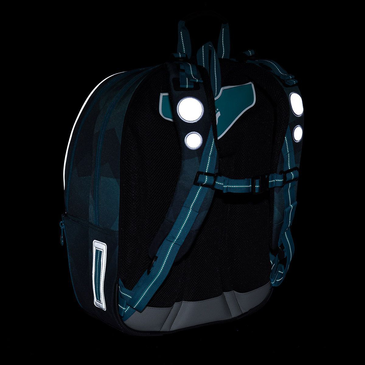 - reflexní prvky: na čele a bocích batohu, na ramenních popruzích
