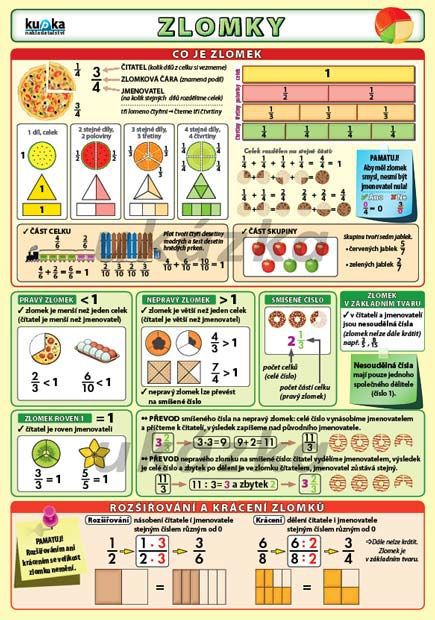 Přehledně zpracované a bohatě ilustrované téma zlomků.