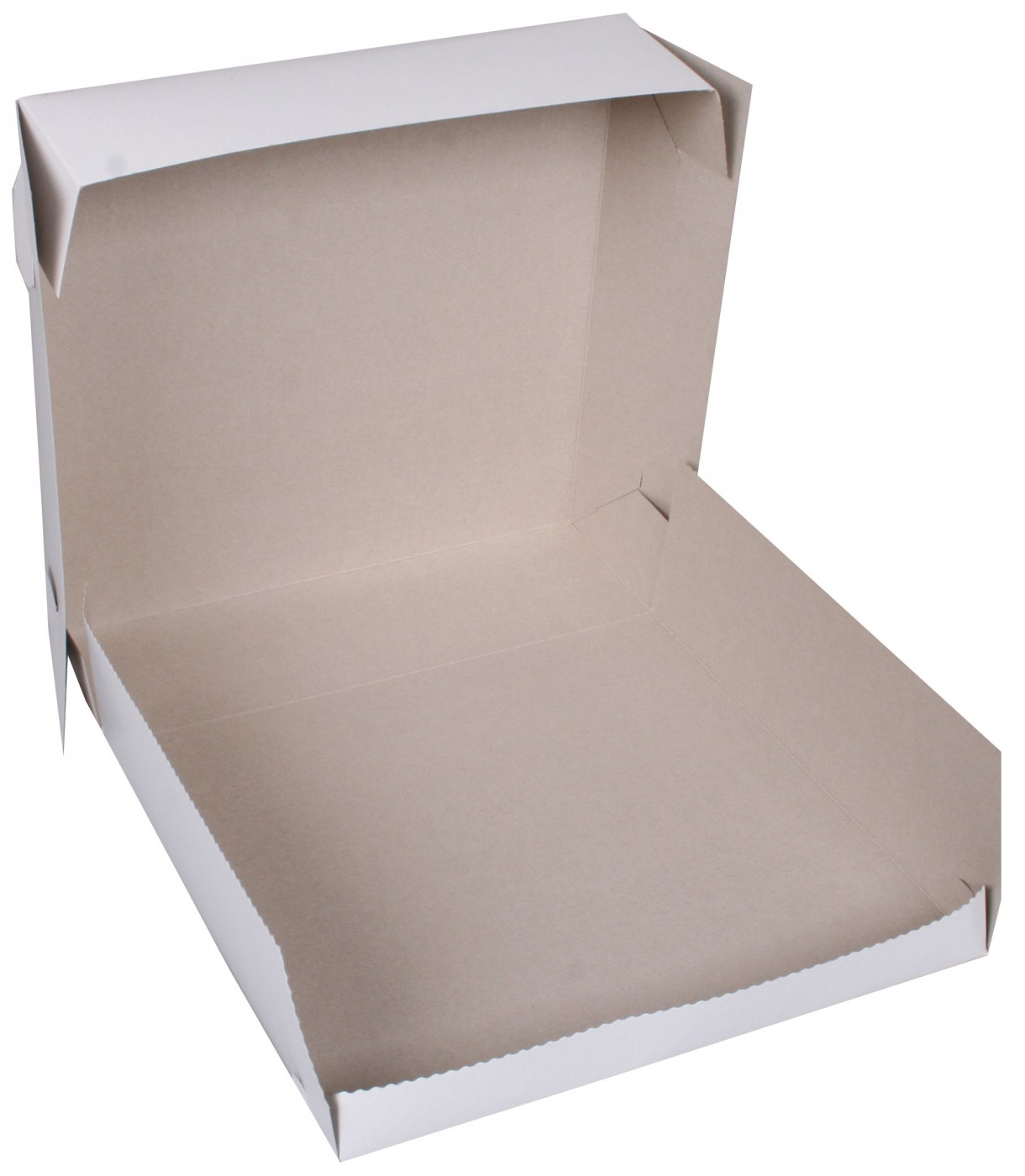 Jednodílná skládací krabička z bílé skládačkové lepenky.