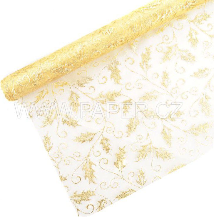 Organza glitr 35cm/5y zlatá/zlatá