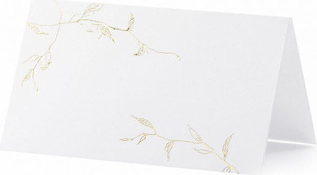 Papírové svatební jmenovky s ražbou zlatých větviček