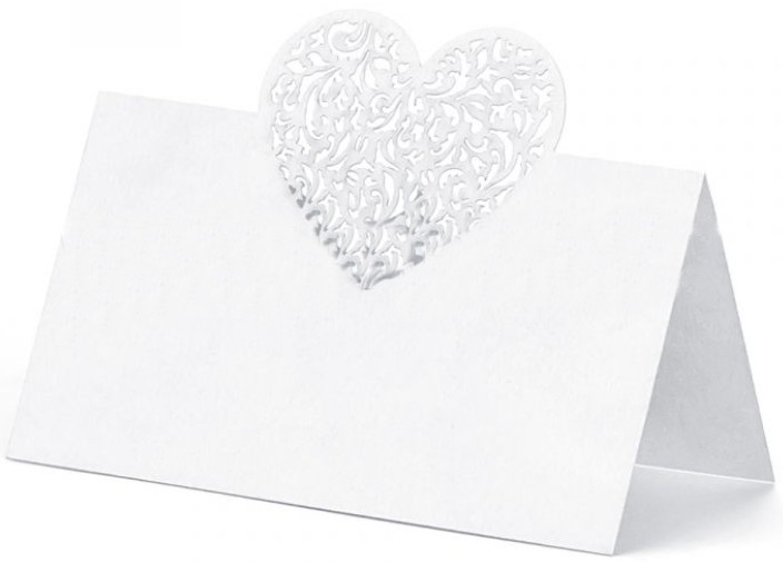 motiv: srdceSvatební jmenovky s výsekem srdce, bílé.
