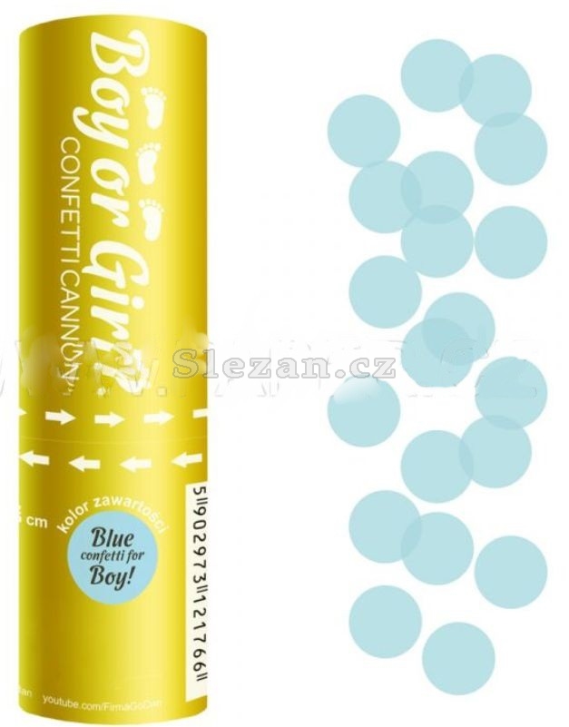 Modré vystřelovací konfety ve tvaru koleček.