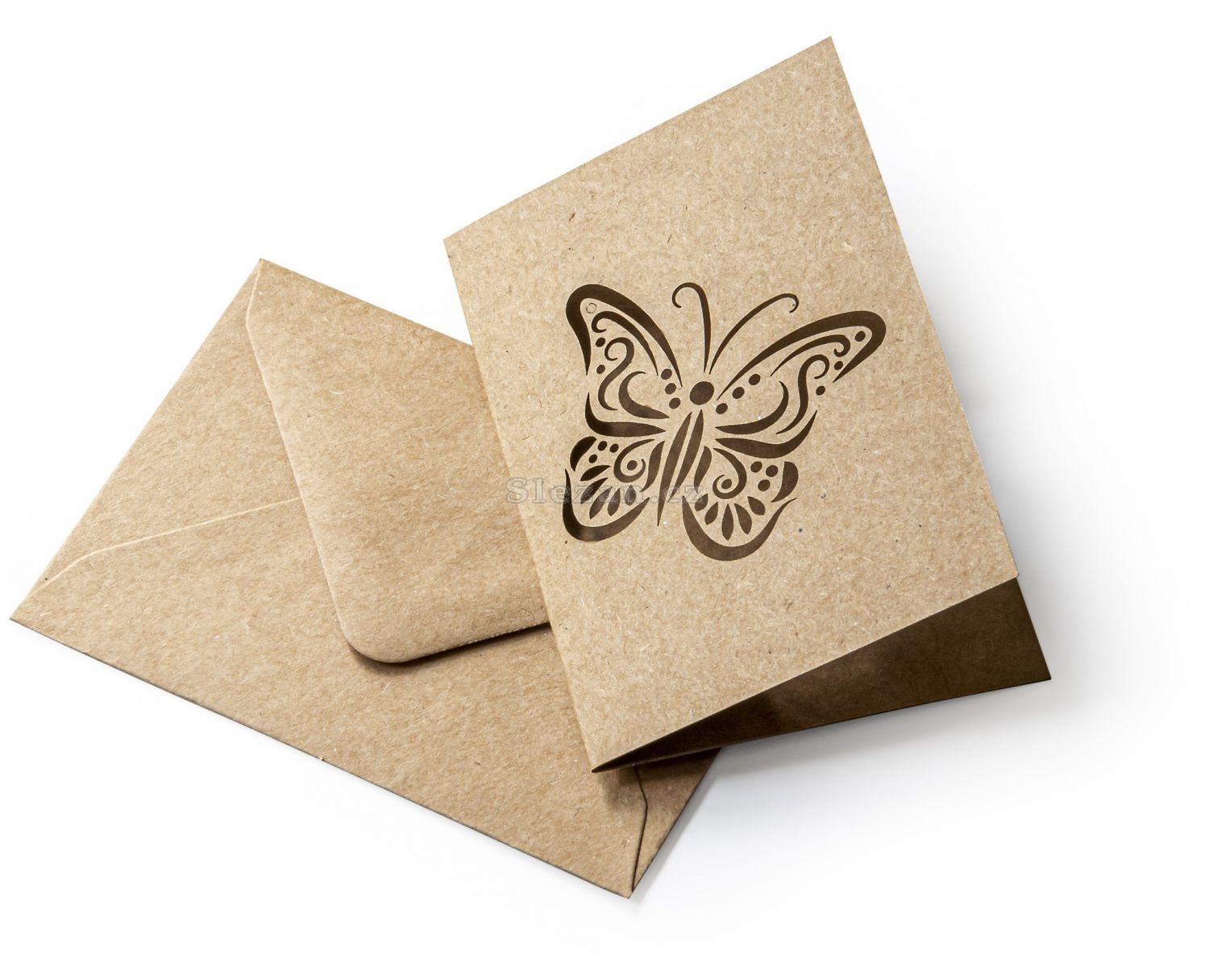 Přání motýl s obálkou Kraft 70x100mm, 5ks