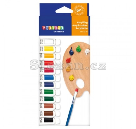 Balení obsahuje 12 barev (bílá, žlutá citronová, okrová, oranžová, červená, sv. modrá, sv. zelená, tm. modrá, hnědá, tm. modrá, černá) Vhodné na dřevo, keramiku, sklo, papír, plasty atd. Vodou ředitelné a omyvatelné. Barvy je možné vzájemně míchat k rozšíření barevné palety.