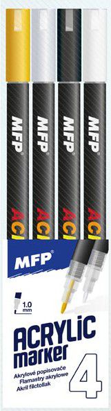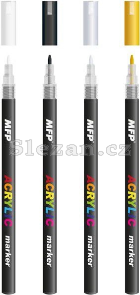 Akrylový popisovač, sada 4 ks balených v plastové krabičce. Tyto akrylové popisovače se vyznačují svou barevnou sytostí i stálostí, a velmi dobrými krycími schopnostmi. Jsou vhodné na všechny nemastné a hladké povrchy, jako jsou plátna, papír, dřevo, kámen atd. Set obsahuje tyto barvy: zlatá, stříbrná, černá, bílá Návod k použití: Před použitím protřepte Stisknete hrot dolů, dokud nevyteče barva Nemačkejte hrot během psaní Skladujte hrotem nahoru Hrot: 1 mm Délka jedné barvy: 148 mm Průměr: 11 mm