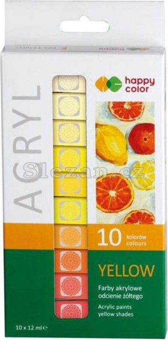 Barvy akrylové Happy Color 12ml, 10barev YELLOW