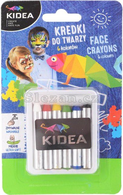 Obličejové barvy v šesti výrazných barvách, které jsou díky své jemné struktuře ideální pro kreslení kreativních kreseb na kůži.