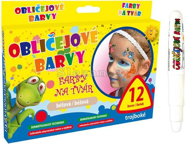 Díky těmto pestrým barvám vykouzlíte na tváři dítěte krásnou masku na karneval, párty nebo jinou oslavu.