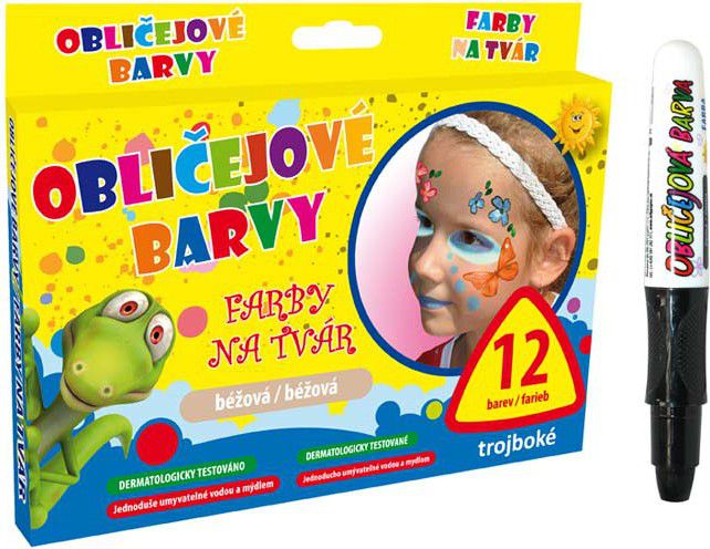 Díky těmto pestrým barvám vykouzlíte na tváři dítěte krásnou masku na karneval, párty nebo jinou oslavu.
