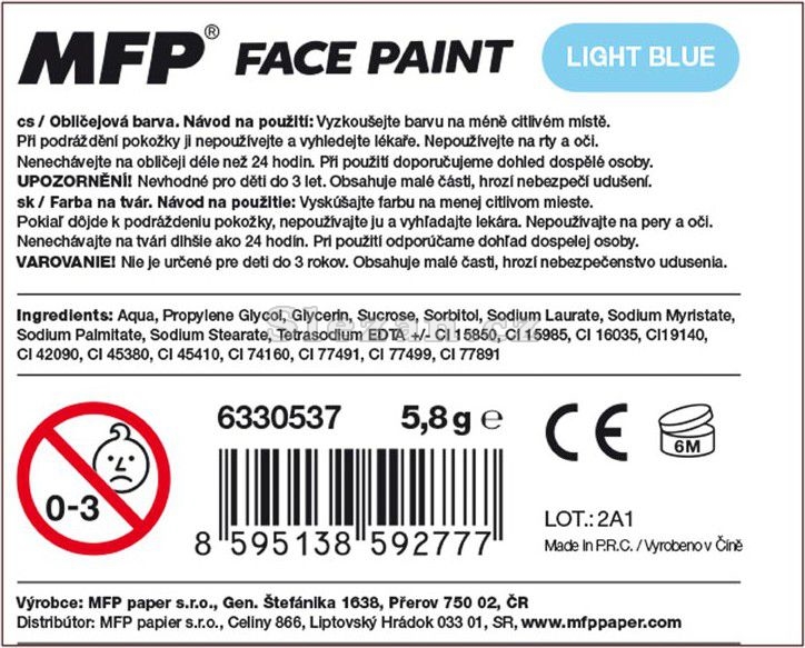 Barva na obličej světle modrá, na principu rtěnky (6 g).