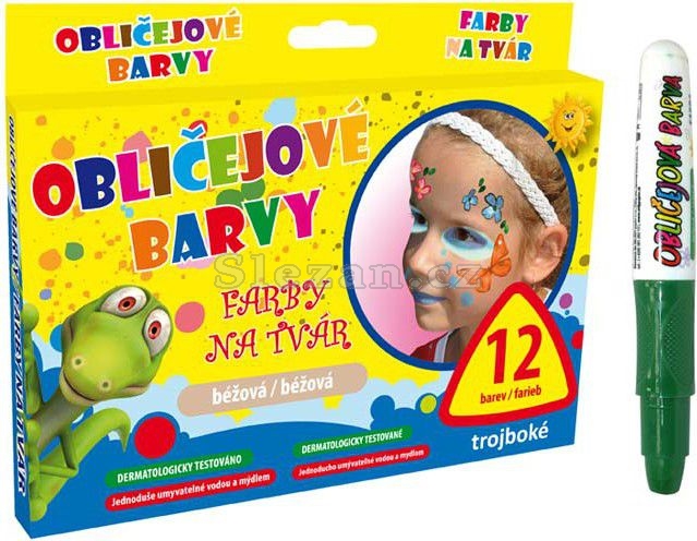 Díky těmto pestrým barvám vykouzlíte na tváři dítěte krásnou masku na karneval, párty nebo jinou oslavu.