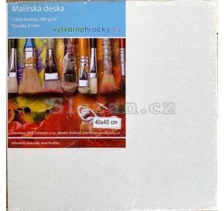 Malířská deska potažená KVALITNÍM plátnem ze 100% bavlny. Speciální podkladová deska je silná 3 mm. Plátno 280g/m je upraveno šepsem a je přetaženo přes hrany. Desky jsou vhodné pro malbu olejovými barvami, akrylovými barvami, temperami či decoupage.