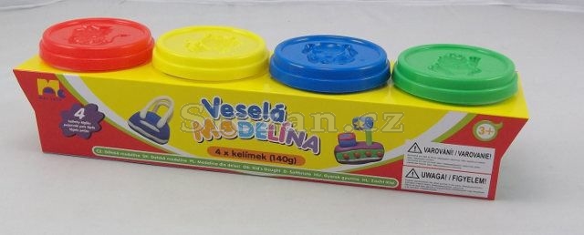 Sada 4 kelímků modelíny v barvách - žlutá, zelená, modrá a červená.