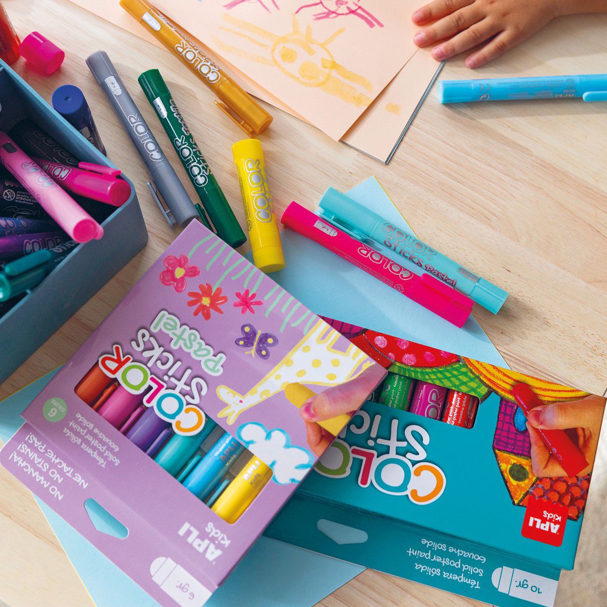Vysouvací barvy v tyčinces. Ideální ke kreslení a malování na papír, karton. Po zaschnutí vytvářejí saténový efekt. Podle vyvíjení tlaku můžete dosáhnout různé povrchové úpravy: lehký tlak - pastelový efekt, silný tlak - temperový efekt.